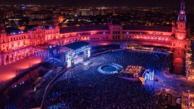 Hay lugares que no solo acogen la música, sino que la transforman. Espacios donde el directo deja de ser únicamente un concierto para convertirse en una vivencia que se fija en la memoria. La Plaza de España es uno de ellos. Y cada verano, gracias a Icónica Santalucía Sevilla Fest, se confirma como uno de los escenarios más espectaculares del mundo.