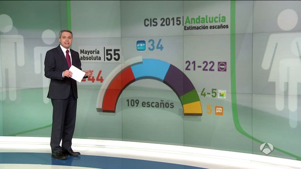 El sondeo pronostica la irrupción de Podemos, con entre 21 y 22 escaños, la entrada de Ciudadanos con cinco diputados y el desplome de IU, que bajaría de 12 escaños a entre cuatro y cinco. UPyD volvería a quedar a fuera de un Parlamento en el que Susana Díaz dependería de posibles acuerdos con el PP o con Podemos para gobernar con estabilidad.