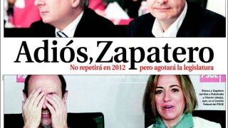 EL PAIS dedica prácticamente la totalidad de su primera página a la sucesión del presidente del Gobierno y titula: "Zapatero abre paso a un nuevo liderazgo en el PSOE tras renunciar a ser candidato"; "Rubalcaba es el cartel electoral preferido". El diario considera que el presidente del Ejecutivo ha hecho historia ya que es la primera vez que un presidente del Gobierno en ejercicio anuncia su retirada. Además, el rotativo desacata que la decisión del presidente calma los temores de los barones ante el 22-M y va más allá y titula: "Rubalcaba es el candidato perfecto", según una encuesta de Metroscopia que también revela que Carme Chacón se convierte por primera vez en el miembro del Gobierno mejor valorado. Asimismo, el diario publica que el amigo al que aludía Zapatero cuando afirmaba que la decisión sobre su continuidad la sabía su esposa y un amigo del partido era el presidente del Congreso, José Bono.