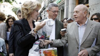 La presidenta de la Comunidad de Madrid, Esperanza Aguirre, y el alcalde de la capital, Alberto Ruiz-Gallardón, se han dado un baño de multitudes por el centro de la ciudad en un recorrido entre la calle Postas y el mercado de San Miguel.