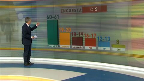 La lista independentista de Junts pel Sí, que engloba a Convergència y ERC, se quedaría a siete u ocho escaños de los 68 en los que está mayoría absoluta del Parlament catalán, una cifra que sí podría alcanzar sumando los ocho diputados que sacaría la Candidatura de d'Unitat Popular (CUP). Según el barómetro preelectoral del Centro de Investigaciones Sociológicas (CIS), la segunda fuerza más votada sería Ciutadans, que recibiría entre 19 y 20 escaños, empatada con la coalición Catalunya Sí es Pot, que se haría con con 18 o 19 representantes.