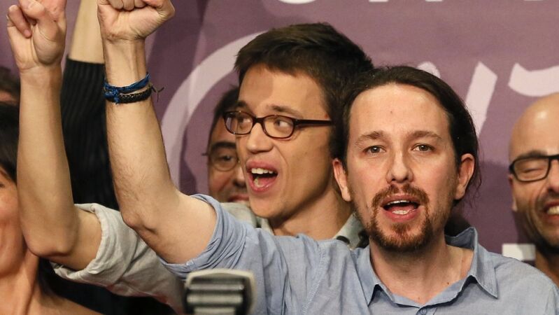 Pablo Iglesias ha comparecido reiterando la misma idea que antes explicó Errejón, "hoy ha nacido una nueva España que pone fin al sistema político del turno y que inaugura una nueva fuerza política".