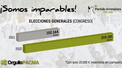 Con una Ley Electoral justa, en la que todos los votos valieran lo mismo, PACMA hubiera obtenido representación en el Congreso. Exigimos una reforma que elimine la barrera del 3% para el reparto de escaños y la circunscripción provincial", solicita la formación animalista.
