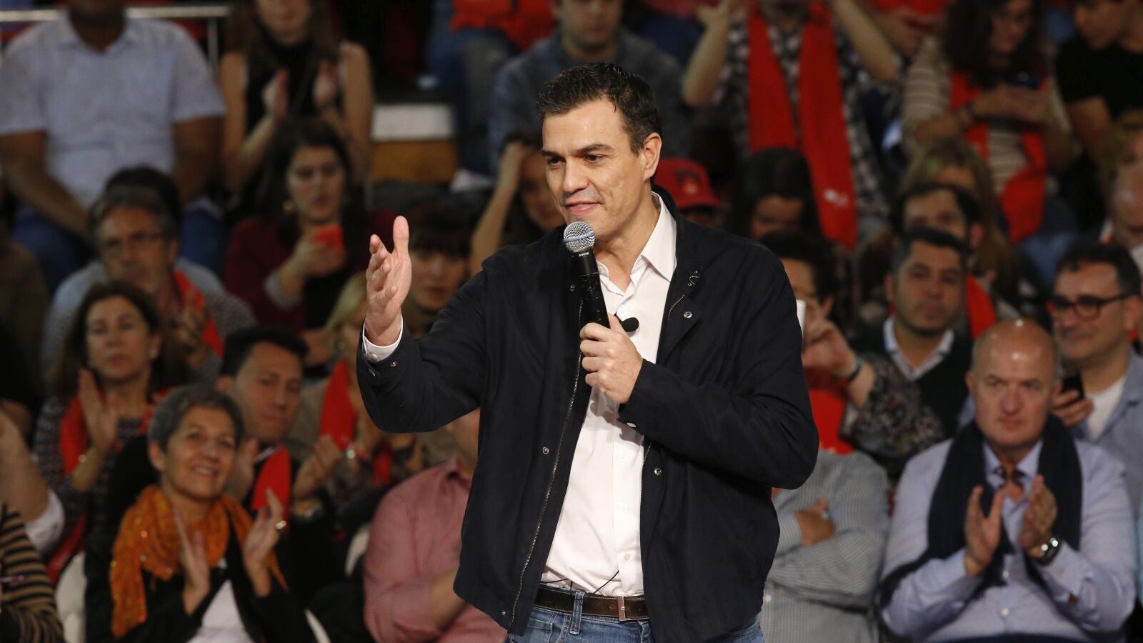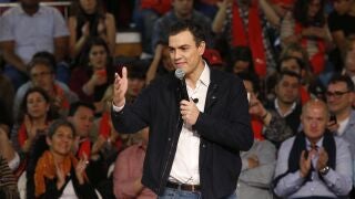 Sánchez ha rechazado los rumores de pactos con el PP de los últimos días asegurando que lo que quiere el PSOE "no es pactar con Rajoy, sino echarle". "Se ofenden por cómo le hable en el debate del 14-D pero,¿cómo quieren que llamemos al SMS de Rajoy o al bloqueo a investigar su financiacion ilegal? Pues a partir de ahora lo llamaremos 'voto socialista'".