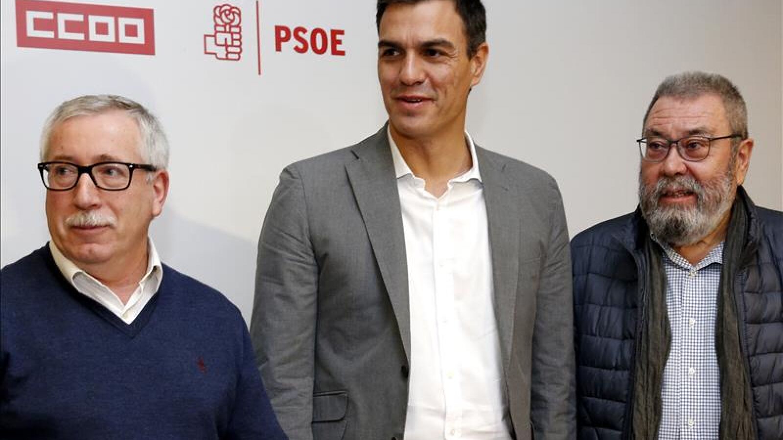 Sánchez ha reiterado su postura después de reunirse en un hotel de Madrid con los secretarios generales de UGT, Cándido Méndez, y de CCOO, Ignacio Fernández Toxo.