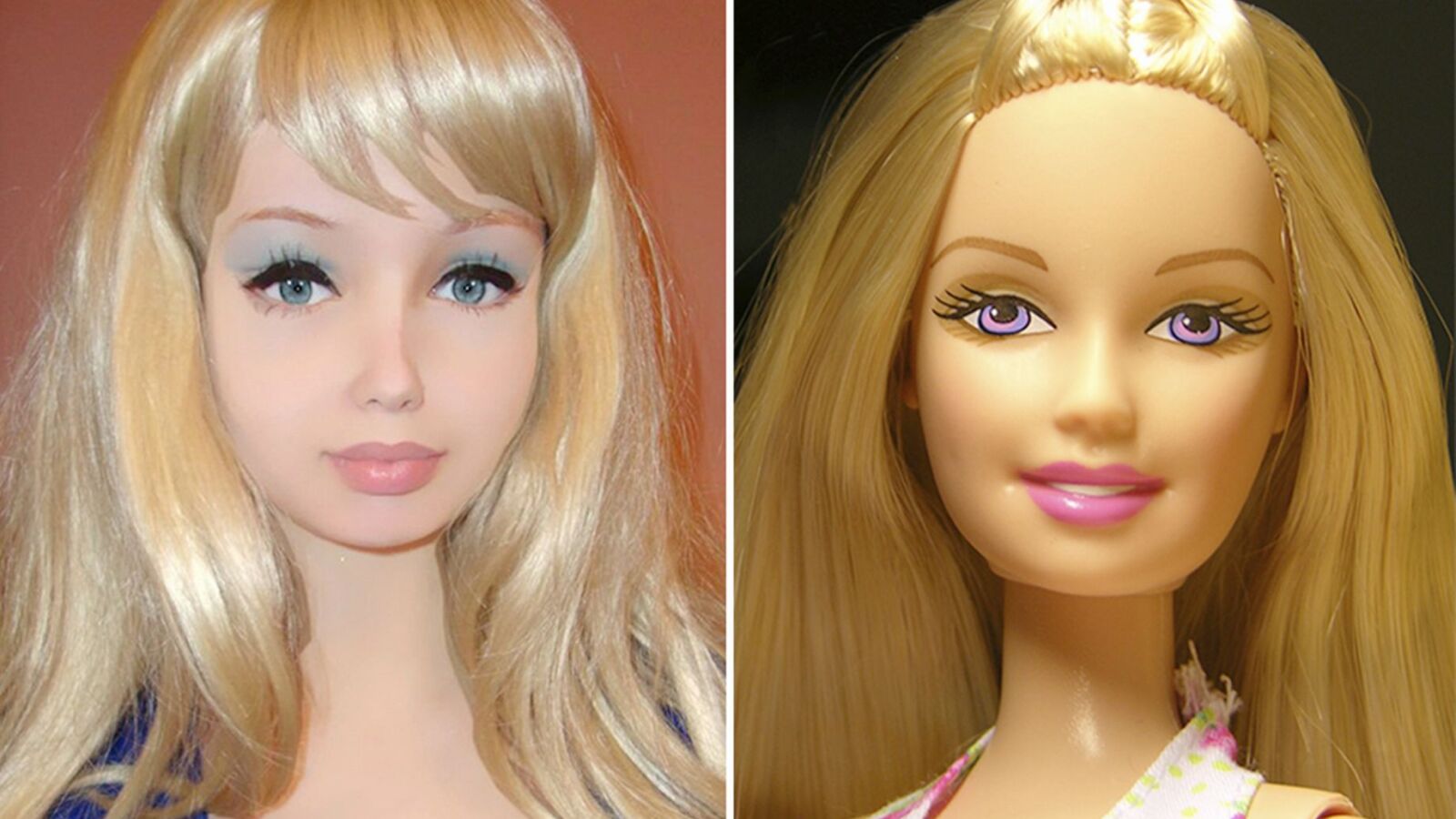 Su pequeña cintura, su pelo rubio platino y sus lentillas azules consigue que su parecido con la famosa muñeca Barbie sea asombroso.