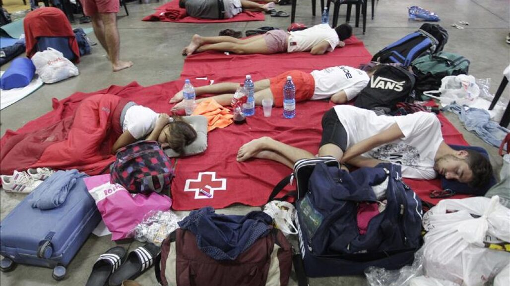Los jóvenes han comenzado a acudir a las zonas de acampada, que se han visto afectadas por los charcos pero también por el viento que ha hecho volar muchas tiendas de campaña. Allí muchos han continuado la fiesta y otros han deambulado por el paseo marítimo, bien buscando algo de información sobre la suspensión de los conciertos, bien para continuar la fiesta.