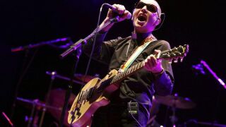 Con vaqueros ajustados negros, el identificativo alzacuello blanco en blusón negro, crucifijo metálico al cuello y gigantes gafas de sol oscuras, está en plena gira de la Calva Loca, y no podía ser de otra forma. La banda que la acompañó en su única actuación en España, en el festival La Mar de Músicas de Cartagena, formada por un 60 por ciento de hombres y un 40 por ciento de mujeres, no es de nueva hornada, sino más bien de su generación postpunk.