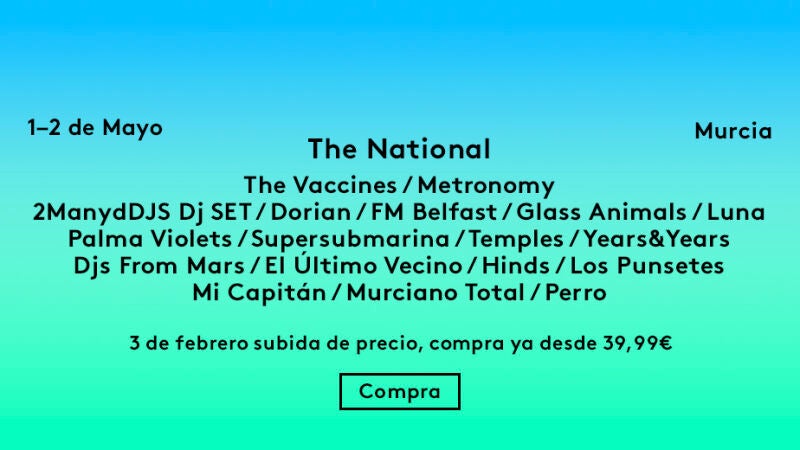 The National, 2manydjs DJ SET, Temples, Years & Years, FM Belfast, Djs From Mars, Hinds y Mi Capitán son los nuevos grupos confirmados para la octava edición del festival murciano SOS 4.8, que se celebrará los días 1 y 2 de mayo próximos, informó la organización. Estos nombres se suman los que ya conocíamos de Supersubmarina, The Vaccines, Metronomy y Palma Violets entre otros.