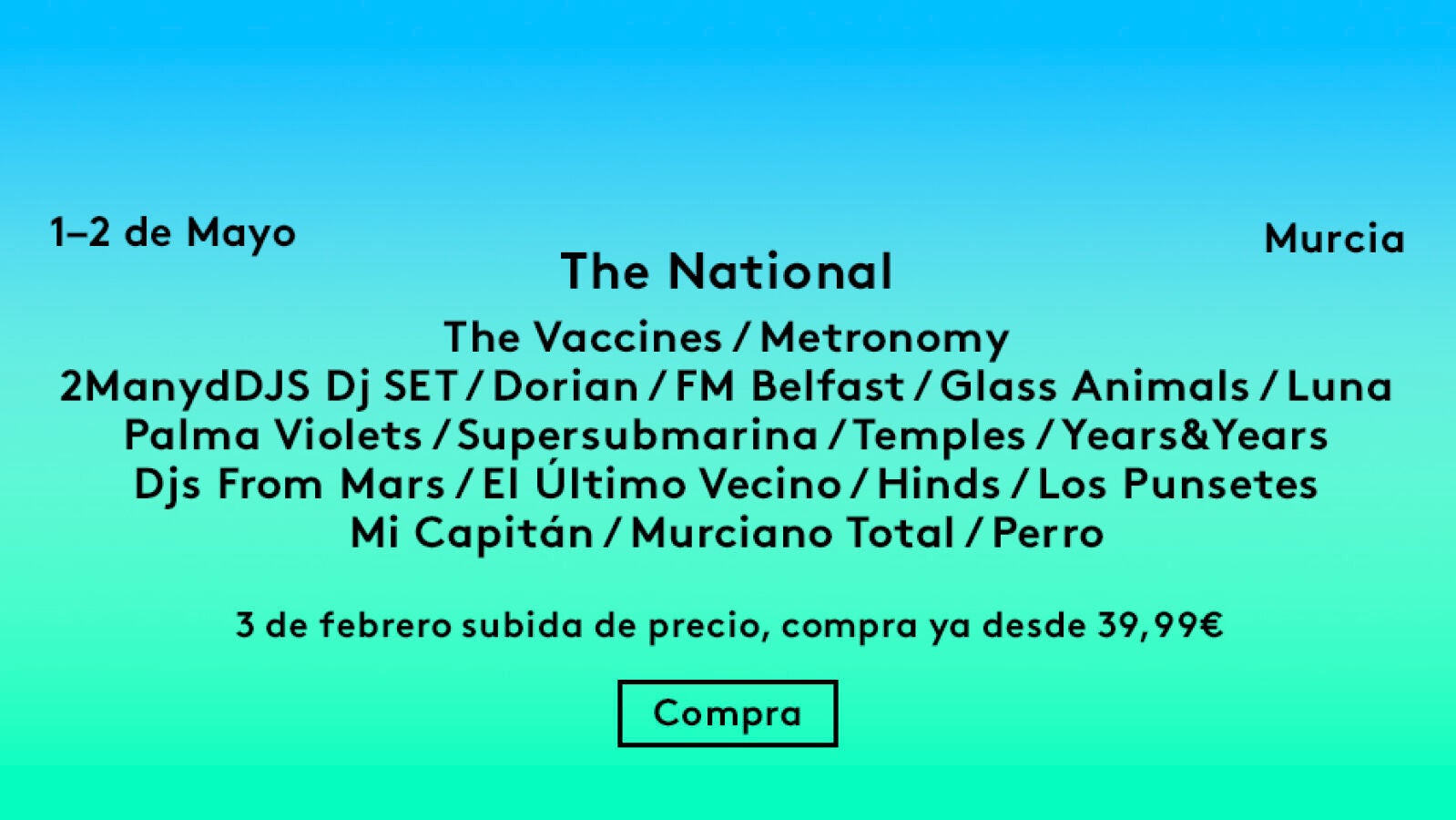 Las citadas bandas se unen a las ya anunciadas The Vaccines, Metronomy, Palma Violets, Glass Animals, Luna, Supersubmarina, Dorian, Los Punsetes, El Último Vecino, Murciano Total y Perro.