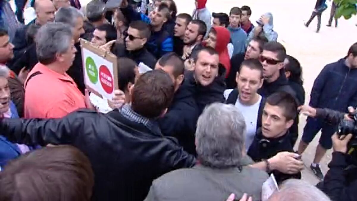 Un grupo de jóvenes intenta boicotear el primer mitin de Chacón en la campaña