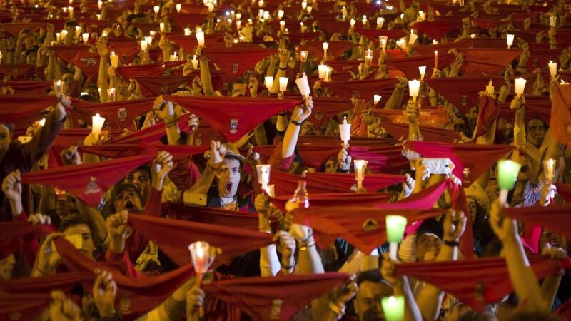 "Pamploneses, pamplonesas, se han acabado las fiestas de San Fermín" ha anunciado el alcalde de la ciudad a medianoche. Tras estas palabras las miles de personas congregadas desataron el pañuelo rojo del cuello y encendiendo las velas dieron paso al 'Pobre de mí', justo al terminar entonaron el 'ya falta menos' para las próximas fiestas.