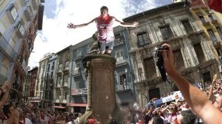 A las 12:00 horas en punto el presidente de la Cruz Roja de Navarra se asomaba al balcón principal del Ayuntamiento para lanzar el chupinazo y dar comienzo a las fiestas de San Fermín, acompañado del tradicional grito: "¡Viva San Fermín!, ¡Gora San Fermín!".