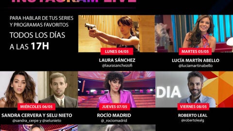 Los perfiles oficiales en redes de ATRESplayer irán anunciando qué famoso de Atresmedia será el encargado de realizar cada directo. Asimismo, dichos encuentros 'live' se irán promocionando desde las redes del programa o serie de turno.