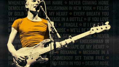 El público de Starlite podrá escuchar éxitos como “Englishman In New York”, “Fields Of Gold”, “Shape Of My Heart”, “Every Breath You Take”, “Roxanne”, “Message In A Bottle” y muchos más, junto a un Sting eléctrico y lleno de rock. Será una oportunidad única de presenciar el concierto de uno de los solistas más distinguidos en el mundo, en Starlite 2019.