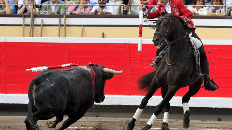 En este caso, la faena de Hermoso se ha sostenido sobre la grupa de 'Disparate', con el que ha hecho insistentemente su personal suerte de la "hermosina" a un toro de poco ritmo pero que acabó encelado en la cabalgadura.