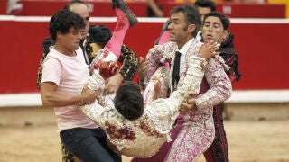 La oreja que le ha cortado al quinto toro el sevillano Pepe Moral y la cornada, de menor gravedad, sufrida por Gonzalo Caballero al entrar a matar al tercero son los hechos más reseñables del festejo de los Sanfermines, en los que se ha lidiado una corrida de José Escolar de muy variado comportamiento.