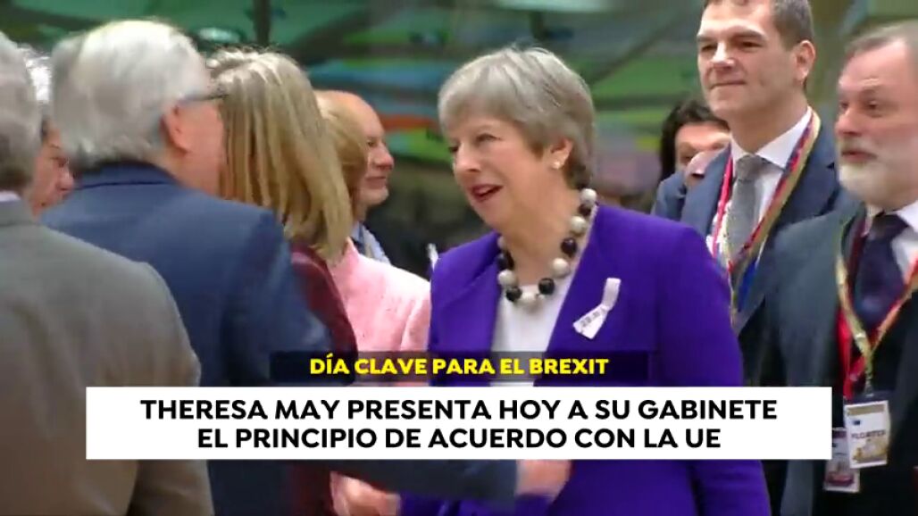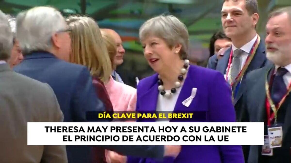 Theresa May presenta hoy a su gabinete el principio de acuerdo con la UE. A la misma hora en Bruselas se reúnen los embajadores de los 27 para analizar el texto de unas 500 páginas. El principal escollo, la frontera con Irlanda del Norte, se habría solucionado con la oferta de mantener a “todo Reino Unido” dentro de la Unión Aduanera.