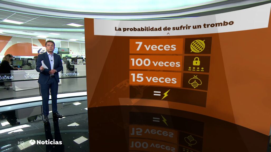 También es cien veces más probable acertar, a la primera, un número pin que sufrir una trombosis, y quince veces más probable morir de la picadura de una abeja. Además, tenemos las mismas posibilidades de morir alcanzados por un rayo que sufrir un trombo por la vacuna contra el COVID-19 de Oxford, Astrazeneca.