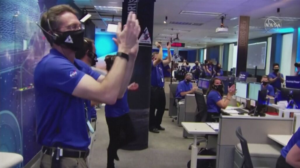 Celebración en la NASA después de que la nave Osiris-Rex haya logrado el aterrizaje en el asteroide Bennu