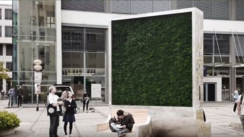 Su forma es cuadrada, sin tronco y en lugar de hojas, lo componen paredes de musgo, que filtra el aire, captando las partículas contaminantes y convirtiéndolas en nutrientes. Puede absorber la misma cantidad de dióxido de nitrógeno que casi 300 árboles naturales, y cada uno de ellos es capaz de absorber 240 toneladas métricas de dióxido de carbono cada año.