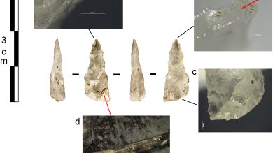 La investigación determinó que catorce de los fragmentos de la muestra presentaban evidencias de daños relacionados con el impacto y características de desgaste que indicaban que pudieron haber sido utilizados para la caza. Así, el examen de las fracturas relacionadas con el impacto señalaron que estas piedras talladas pudieron haber estado unidas a mangos para formar armas y que fueron utilizadas a distancia, muy probablemente con un lanzador de lanzas flexible o un arco.