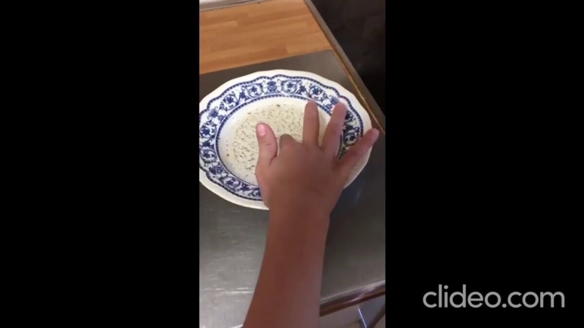 En las imágenes se ve como el niño pone el dedo en el cuenco y se mancha el dedo. Posteriormente se llena las manos de jabón y vuelve a introducirlas en el cuenco. En ese momento la pimienta, que hace de coronavirus, no se queda pegado en el dedo.