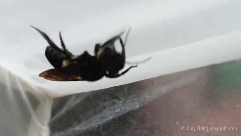 "Fue impresionante ver este insecto que parece un 'bulldog volador' y del que no estábamos seguros que siguiese existiendo," indicó el jueves en un comunicado el fotógrafo especializado en abejas, Clay Bolt, que asegura ser el primero en tomar instantáneas y grabar un vídeo de un ejemplar vivo de esta especie.