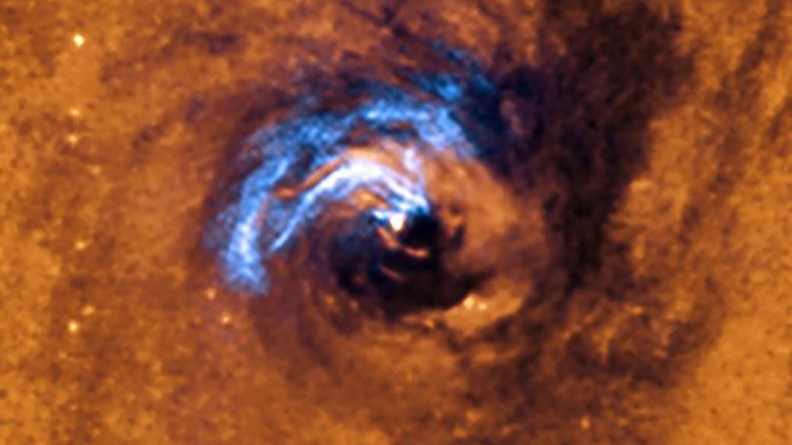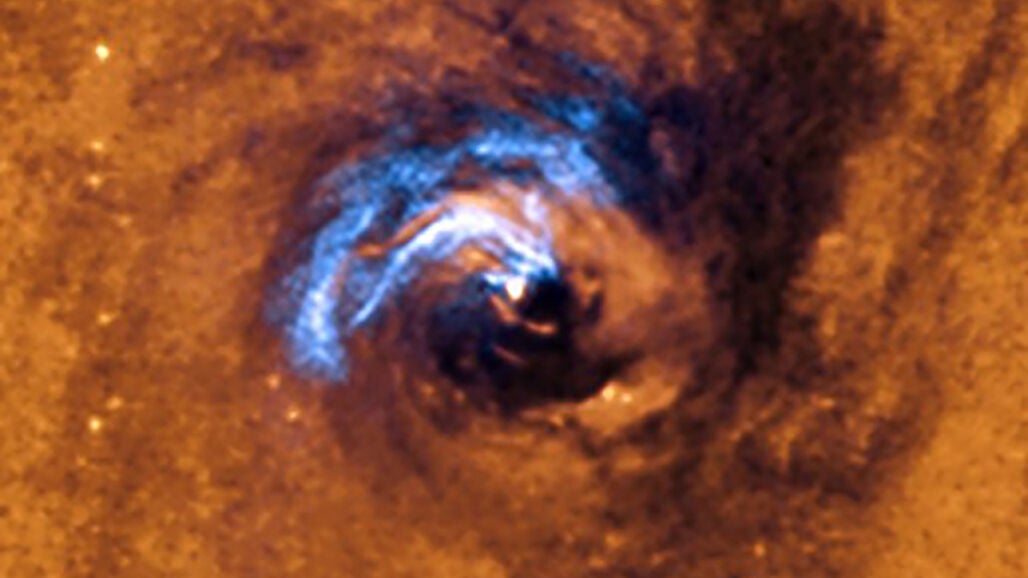 Los telescopios combinados del IAC muestran una instantánea donde se observa cómo esos filamentos de polvo se separan para dirigirse directamente al centro de la galaxia. Una vez allí, circulan y giran alrededor del agujero negro hasta que son tragados por él.