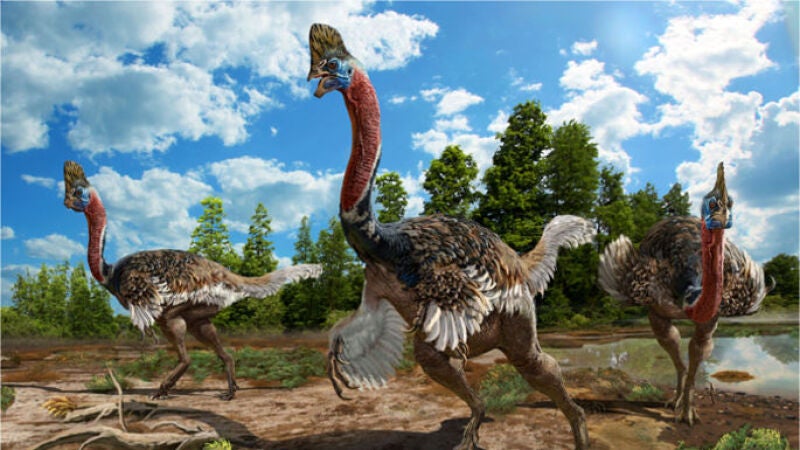La nueva especie se llama 'Corythoraptor jacobsi' y los fósiles encontrados sugieren que el espécimen tenía al menos ocho años: se trata de un adulto joven que no se había desarrollado completamente. Uno de los rasgos más característicos de este dinosaurio era su cresta, similar al casco o protuberancia de los casuarios modernos, un género de ave que no vuela y que, entre otros, se distribuye en Australia.