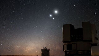 La conjunción ha sido entre la Luna y Venus, pero el hecho de que Júpiter esté detrás de la primera, ha hecho posible que se vea este espectáculo astronómico desde cualquier parte del planeta.