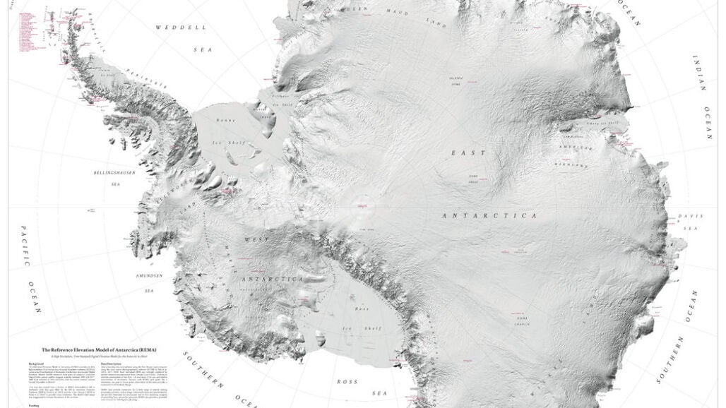 Los investigadores anunciaron un nuevo mapa de alta resolución del continente más sureño del mundo llamado Reference Elevation Model of Antarctica (REMA), en español Modelo Referencial de Elevación de Antártida, que dicen hace de la zona el continente mejor mapeado de todo el mundo.