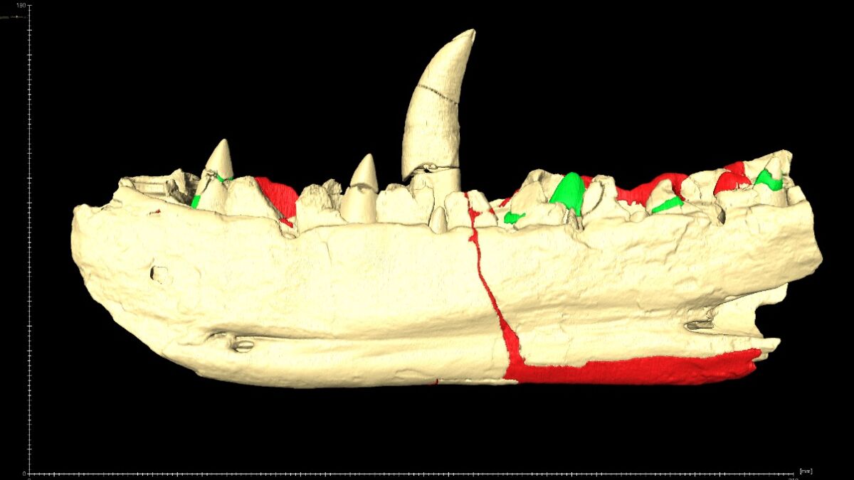 En un nivel de análisis sin precedentes, pudo ver por primera vez el interior de la mandíbula, trazando las raíces de los dientes y la extensión de las diferentes reparaciones. Algunos daños ocurrieron al espécimen cuando se extrajo de la roca, posiblemente poco después de que fue descubierto.