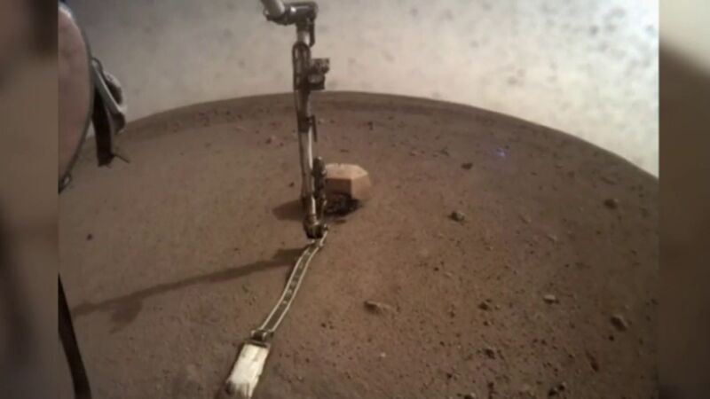 Así, la misión ha publicado en su cuenta de Twitter cómo este instrumento mecánico se desplegó para utilizar su pala y empujar un poco el cable del sismómetro, el primer instrumento colocado en el suelo a más de metro y medio del aterrizador. El brazo mide dos metros.