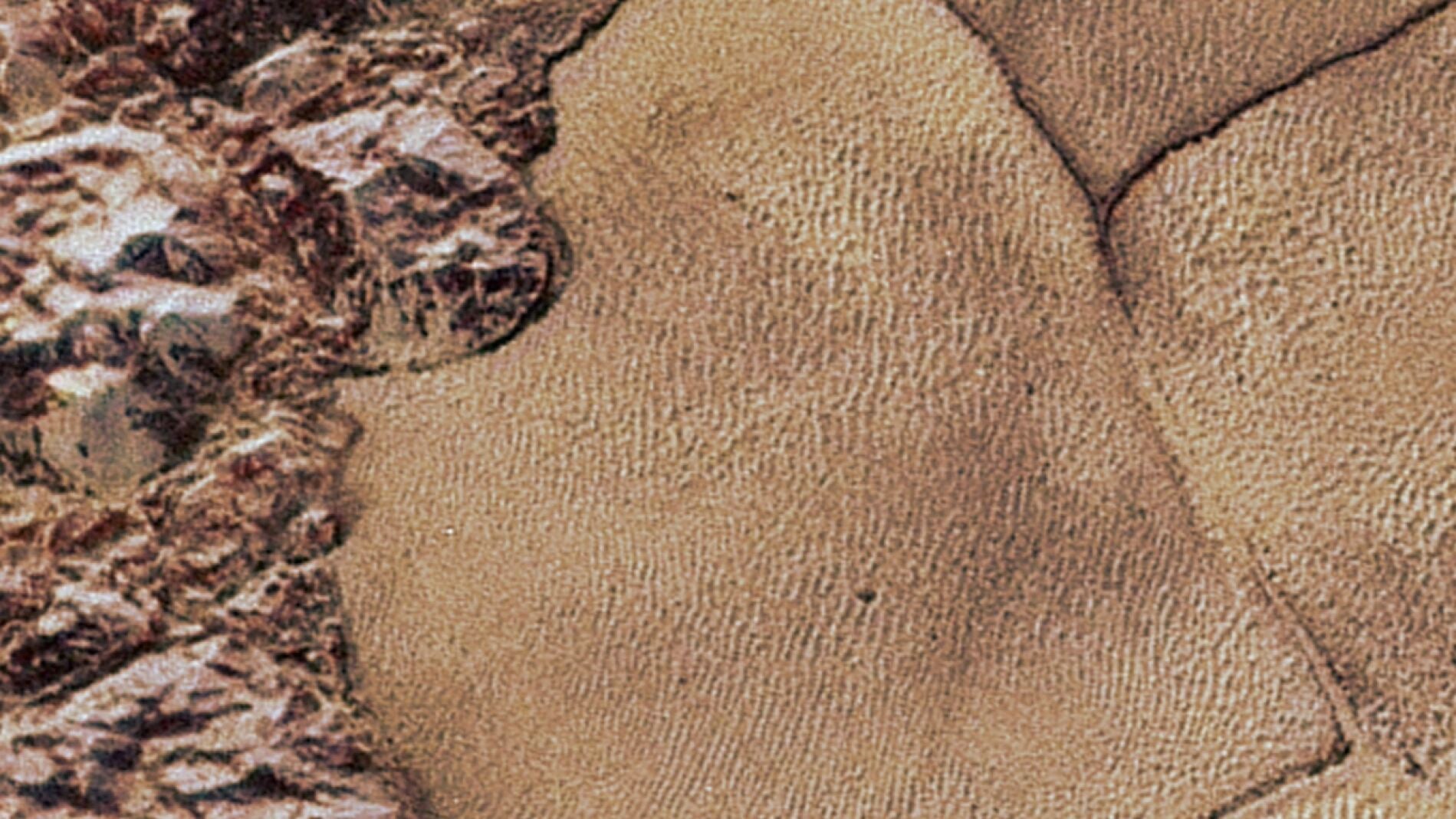 Los científicos de la misión interpolaron algunos de los fotogramas en blanco y negro basándose en lo que saben de Plutón, para recrearlo lo más ajustado posible. El color de baja resolución de la cámara a color fue cubierto sobre los fotogramas para lograr la mejor simulación de color actual disponible de cómo sería descender desde una gran altitud a la superficie de Plutón.
