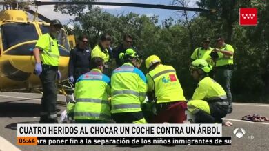 Cuatro personas han resultado heridas de distinta consideración al colisionar esta tarde un monovolumen contra un árbol en la M-505, a la altura de la localidad madrileña de San Lorenzo de El Escorial, ha informado un portavoz de Emergencias Comunidad de Madrid.