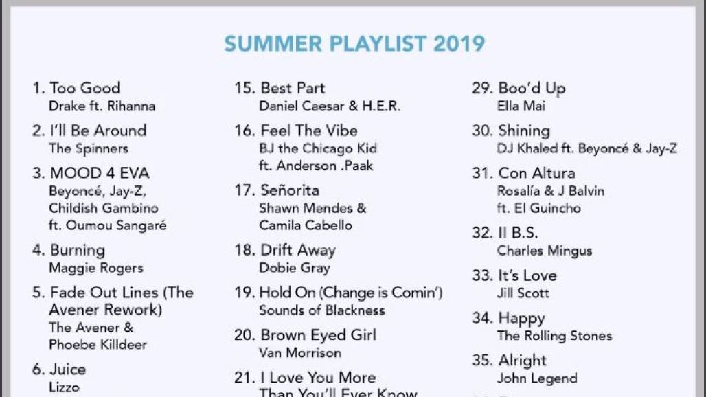 "Ahora que va acabándose el verano, aquí hay una muestra de lo que Michelle y yo hemos estado escuchando: algunas nuevas, otras antiguas, algunas rápidas, otras lentas. Espero que lo disfruten", ha escrito Obama junto a una imagen con la lista de reproducción. 'Con altura' es el tema más escuchado de la artista catalana en Spotify, donde acumula más de 230 millones de escuchas, mientras que en Youtube ya suma más de 760 millones de reproducciones. Camila Cabello también se ha ganado un espacio en la lista de los Obama con su canción 'Señorita', que comparte con el canadiense de raíces portuguesas Shawn Mendes, y que esta semana ocupa el puesto número 2 en la lista de 'Hot 100' de Billboard.