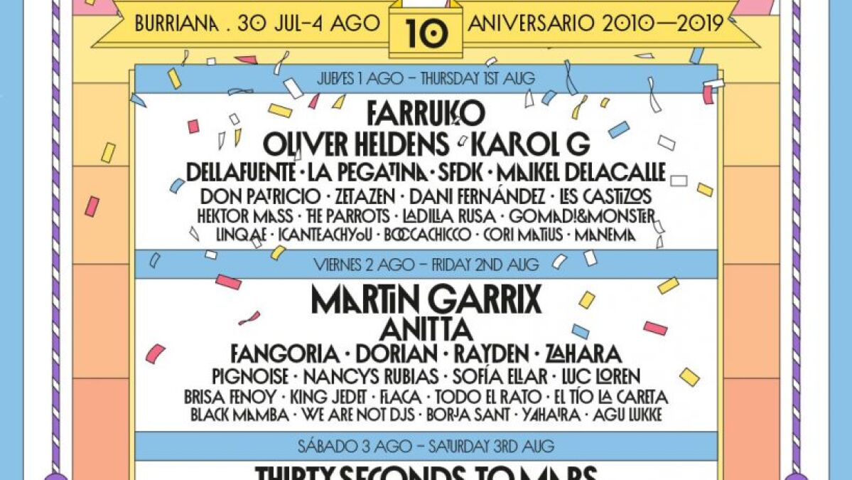 La playa, el sol y sobre todo la mejor música serán los protagonistas en la edición más especial del festival. El festival Arenal Sound 2019 abre sus puertas del 30 de julio al 4 de agosto en la playa El Arenal de Burriana, en Castellón. Durante estos días pasaran por el festival 74 artistas. Las entradas se agotaron en tan solo 24 horas desde que salieron a la venta. Estos son los escenarios por los que pasarán cada día los siguientes grupos: