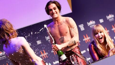 También su 'sinvergonzonería'. Durante una rueda de prensa posterior a Eurovisión 2021, el cantante fue grabado parcialmente desnudo y bebiendo de una botella de champagne.