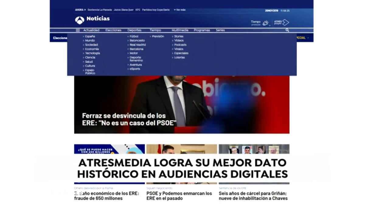 Récord histórico de Atresmedia: escala al quinto puesto del ranking de sites más visitados