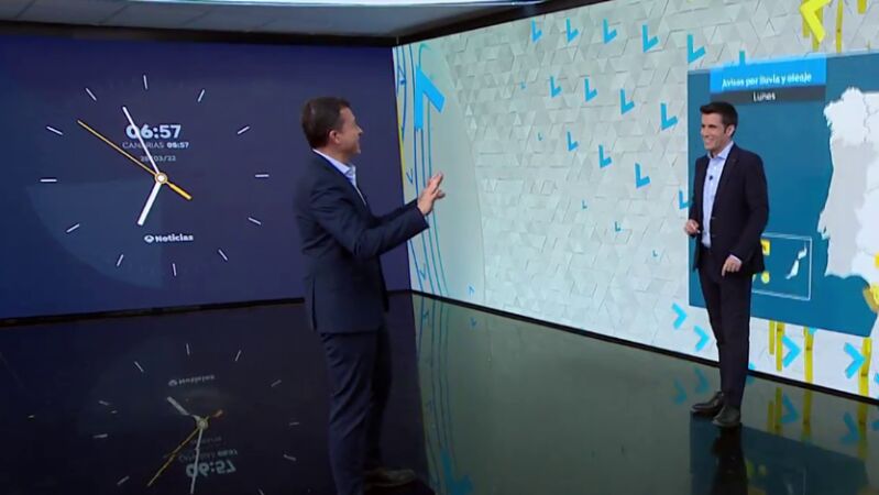 Ambos presentadores han vivido un momento entre risas y después César Gonzalo ha continuado con la previsión: para este lunes el tiempo será estable, aunque mañana regresan las lluvias.