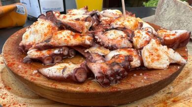 Pero nos dirigimos a los clásicos, a los productos tradicionales. ¿Una de pulpo á feira? Rumbo al sur de la provincia de Pontevedra. Allí, en la parroquia de Figueiró, en Tomiño, se celebra la Festa do Pulpo. Sabemos que los precios del cefalópodo están por las nubes, pero ¿quién dijo miedo después de Halloween? La ración estará aquí a 22 euros, y añaden 'cachelos', pan, postres, bebida y chupitos.