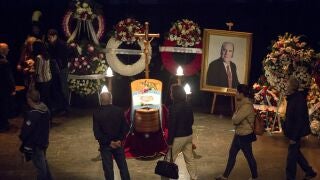 Centenares de personas han recibido con una gran ovación el féretro con los restos mortales de Chiquito de la Calzada a su llegada a la iglesia. La familia ha agradecido las numerosas muestras de cariño llegadas de todas partes de España.