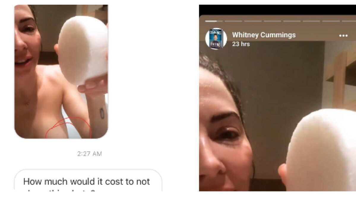 La actriz y cómica Whitney Cummings ha denunciado este lunes en Twitter haber sido extorsionada con una foto suya en la que muestra un pezón. Los chantajistas, que tomaron la imagen de una publicación de su Instagram, pidieron dinero a la humorista a cambio de que esta no saliese a la luz. Ante esta situación, Cummings cogió el toro por los cuernos y decidió publicar las fotografías ella misma en su cuenta de Twitter.