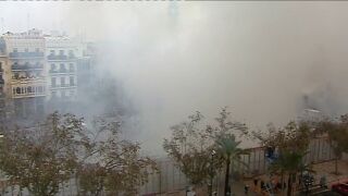 Comienzan las Fallas en Valencia con la primera mascletá del año, pasada por agua
