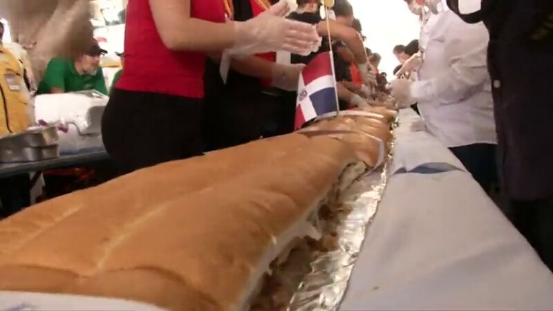 Con una longitud de 70 metros de largo y aproximadamente 865 kilogramos de ingredientes, la monumental torta fue preparada en un tiempo de 2 minutos con 29 segundos, lo cual la acredita como el bocadillo más grande del mundo y, además, elaborado en el menor tiempo posible.