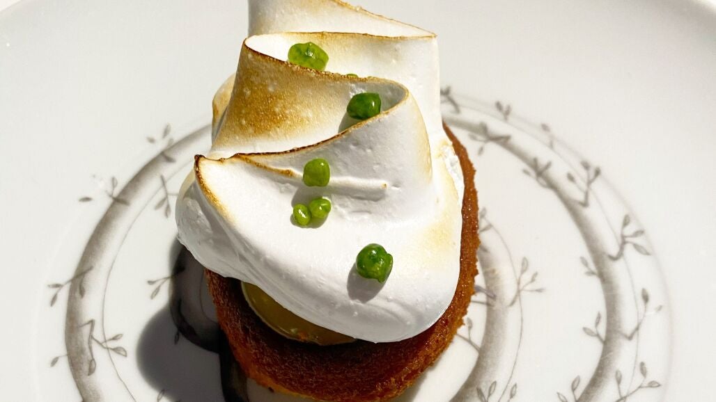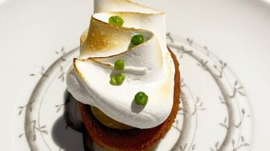 Hay también tres postres a escoger. Un estupendo pastel de limón con muy buen equilibrio entre acidez y dulzura, así como el que se da entre el tierno bizcocho y el esponjoso merengue.