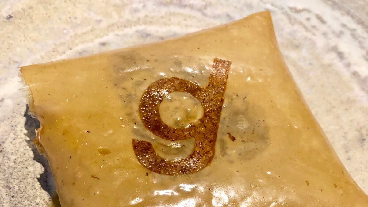 Y por fin, la panchineta de zanahoria morada que es muy crujiente por efecto de la zanahoria que le hace de cobertura, mientras que la crema es un dulce y untuoso suero de algas.
