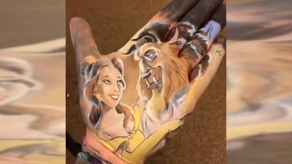 Recrea escenas de películas como, La Bella y La Bestia, o pinta retratos de mitos de la música como Prince, Michael Jackson o Amy Winehouse