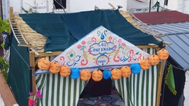 Buen humor y unas sevillanas ayudan a hacer más llevadero el confinamiento obligatorio por la pandemia de coronavirus. Un ejemplo de ello son Jesús y Manuel, que se han negado a no celebrar la feria y lo harán en su propia casa, gracias a la Caseta 'Los Confinados' que han montado en su azotea.